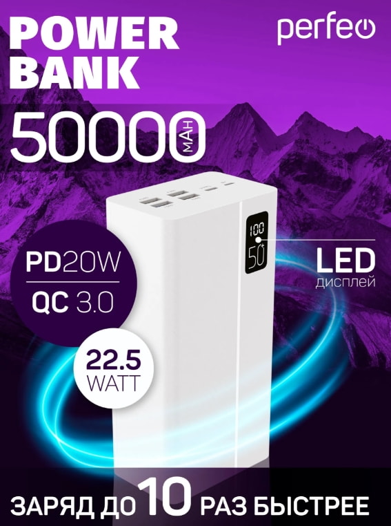 Âíåøíèé àêêóìóëÿòîð Perfeo Powerbank PF_E2079 20000 mAh/LED äèñïëåé/PD + QC 3.0/Type-C/2 USB/22.5W/Á