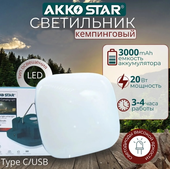 Ô/ê AK-56228 (AKKO STAR) Àêêóìóëÿòîðíûé, LED/15W, ÀÊÁ 4*18650/1200ìÀ, çàðÿäêà îò Type-C+ñîëí. ïàíåëü